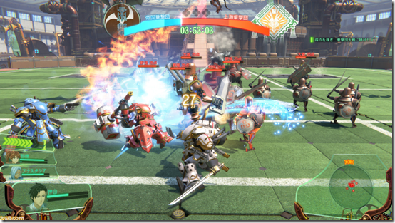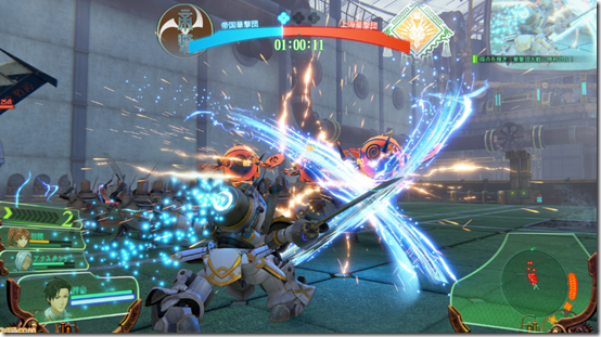 Battles take place by defeating enemies that appear in the middle, and filling the gauge at the top. The amount of points gained or lost are shown at the top, and whoever has more points when all enemies are defeated, or time runs out, is the winner. You’ll advance if you win two rounds.