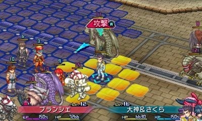 Project X Zone doesn’t waste time showing attack animations for regular enemies like Gods Eater Burst’s Ogretails or Space Channel 5’s Moralians. Since Ayame is a boss character, the game shows he whipping your ally characters. When an enemy attacks a unit you can block to reduce damage by spending 20 XP. If you’re an offensive player, you can counterattack for 20 XP, but counterattacks aren’t full attacks. You only get one turn for you and a solo unit to strike. If a character is about to die, you might want to use full defense which completely shields a character from an attack at the cost of 60 XP. Alternatively, you can choose none of these options to preserve XP for a super move, which costs 100 XP to do. Weak enemies do the same amount of damage as healthy enemies, so like other strategy RPGs you want to focus on eliminating units first. Incapacitated ally units remain on the map, but turn green so you can’t move them.