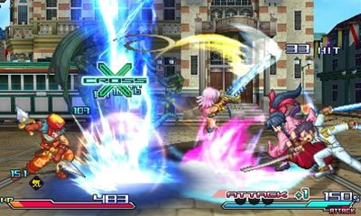 Units in Project X Zone come in pairs, but you can make a three person team by adding a solo unit. In the demo, solo units are set, but you can pair Space Channel 5’s Ulala with Ryu and Ken if you want.