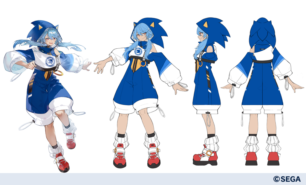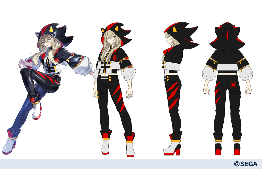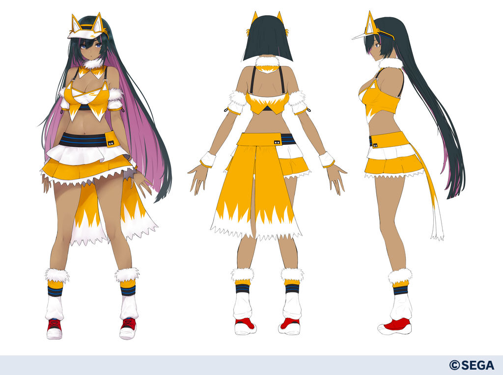 Here are the three pieces of concept art for the Sonic Heroines outfits based on the clothes Aina, Manon, and Nadereh wore in PSO2 New Genesis.