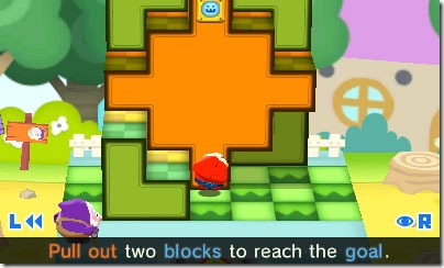 Intelligent Systems came up with a smart use for 3D in Pushmo, too. Since the various blocks are of different colours, you’ll always be able to tell them apart from one another. However, as you can probably tell from the screenshots, when you’ve got several blocks layered one on top of the other in complex shapes, it takes a little concentration to understand how they’re arranged and how much space there is between them. I tried playing puzzles with 3D turned off, and while it’s certainly doable, turning the 3D on immediately throws everything into perspective and makes it easier to understand where each block is in 3D space. Aside from experimenting with the 3D slider in some of the early puzzles for this playtest, I never turned 3D off.
