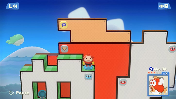 There are two approaches to discussing Intelligent Systems’ Pushmo World for Wii U. First are those who will praise the game’s puzzle mechanics that are fundamentally simple but allow for deviously complicated head scratchers. They will praise the difficulty curve that introduces players to concepts without being condescending and the level creation/sharing features. They will praise the subtly altered camera controls that ensure it’s always easy to see what needs to be seen even without the benefit of the well implemented 3D effect the original benefitted from. Then there are also those who will point out that for all that Pushmo World does well, it has all been done well before. Pushmo World can barely be considered an iteration on the original game’s design. The puzzle mechanics are the same, the multiplayer level sharing was there on the 3DS, and the smart level skip and rewind mechanics that minimize frustration have been there from the beginning. Sure, the new camera controls are nice, but that improvement aids spatial awareness the same way that the 3D screen did in the original. It’s not so much an improvement as it is a necessary alteration to make the game work on a different screen.
