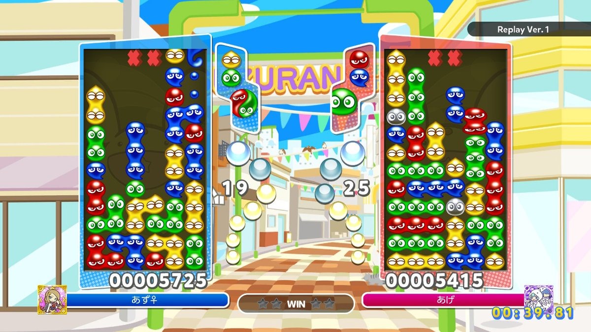 It’s once you start experimenting and scratching the surface that Puyo Puyo Champions‘ opportunities start unfolding. You can adjust the handicap in AI matches, going all the way from the forgiving Sweet to the most demanding Spicy. You can determine if Comeback Assist is on, to give you an edge when your opponent does manage to win. Switching over from Battle, which allows a single match against one opponent, to Endurance, which forces you to think on your feet and go through a gauntlet of AI opponents, is another way to really force yourself to think and react. In fact, I would say Endurance is a great way to get out of your own head, because you can’t start thinking about how well you are or aren’t doing. It all comes down to survival, getting inventive, and maybe seeing if things click. The Online section’s Puyo Puyo Broadcast is another way to really take some time to sit back with Puyo Puyo Champions. It lets you see the masters at work. Once you head into it, you are able to look through all sorts of matches. Since nothing is at stake for you, you can watch what worked for other people. All matches are tagged and, while you can’t search for a specific tag, it does mean things are easily marked so you know what to look for. As an example, filtering by Rank lets you see some of the best matches. Anything here with a Must Watch is a great place to start. Matches with the Master Battle and Rank Up! tags are also helpful, since you get to see people at the top of their games and using tricks that are helping them hit new heights. But mainly, it is a relaxed and controlled environment where you can appreciate what is going on and learn from it.
