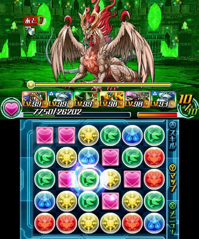 Puzzle & Dragons Z uses the same match three gameplay with some tweaks. Monsters are more animated on 3DS, dungeons have multiple routes, and there’s a Pokémon-ish storyline where you play as a Dragon Tamer fighting the Paradox Corporation.