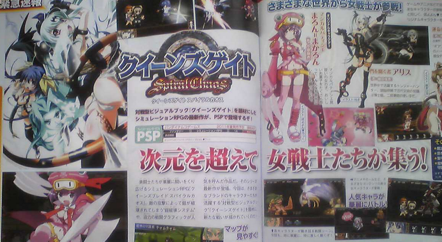Famitsu says this game is a strategy RPG, similar to Queen’s Blade: Spiral Chaos. New features include a zoomable map, an enhanced armor destruction system with five points to hit, and a destiny banish system Namco Bandai plans to unveil later on. Japan gets Queen’s Gate: Spiral Chaos next year.