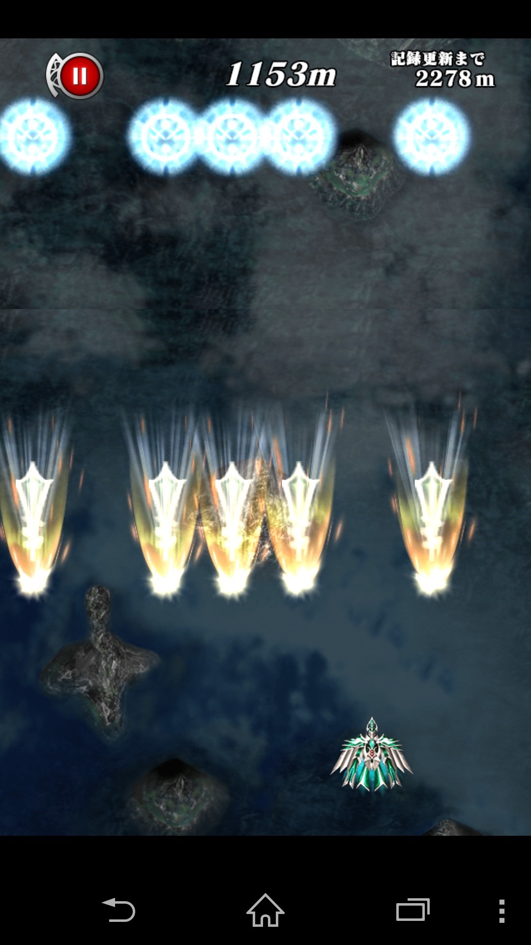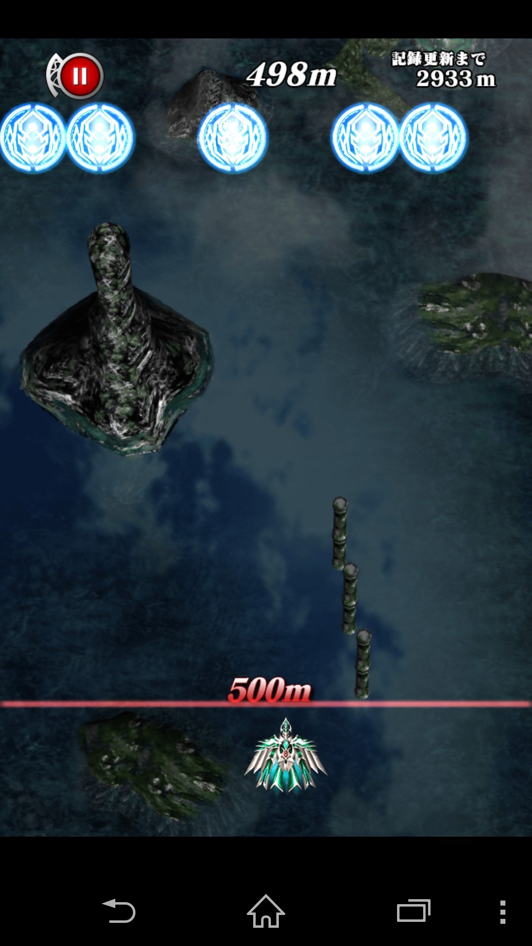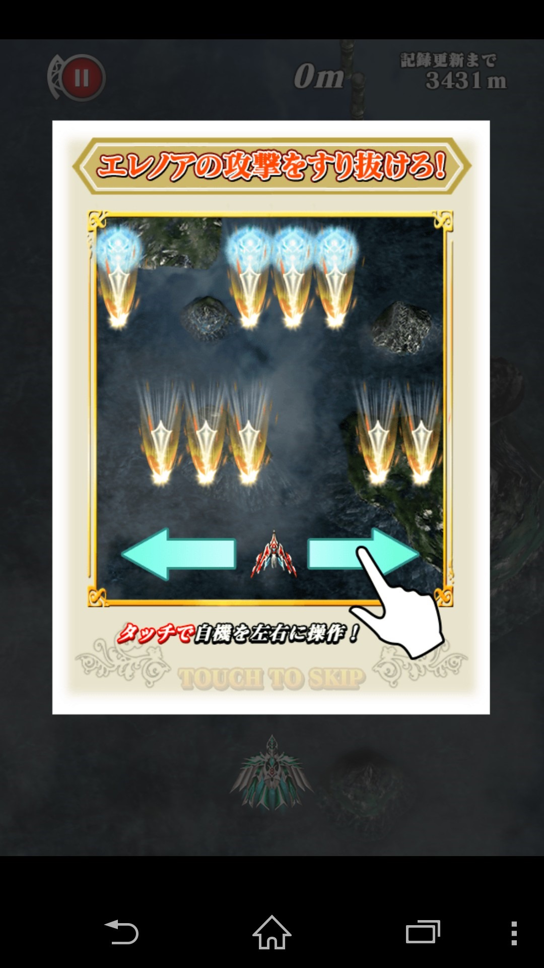 Caladrius Blaze – Touch Evasion! Slip Through Flight is basically a casual version of the game. Instead of shooting enemies you just move left and right to dodge bullets. Shots come in waves so you have to pilot the ship to slip right through holes. The game keeps track of the distance you traveled.