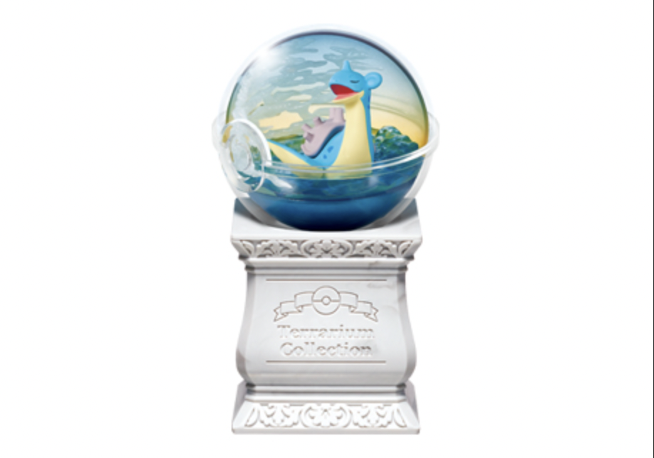 This collection of Pokemon Terrarium figures reference the original Pokemon Red, Blue, Green, and Yellow games. All four possible starters are here in some form, with Pikachu appearing alongside the legendary Mew in one, and another three being Blastoise, Charizard, and Venusaur. Lapras, which we get from a Silph Co person, is another. Things round out with Mewtwo as the final character to appear.