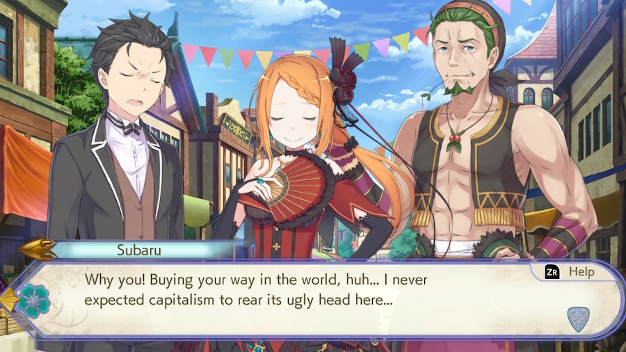 Re:Zero — Starting Life in Another World: The Prophecy of the Throne is the latest entry in the Re:Zero franchise, and it leans on much of the lore established in Re:Zero’s medium-spanning isekai narrative. Despite its wholly original story, it is clear from the outset that you are not starting anywhere near the beginning of the main character’s arc. By the point The Prophecy of the Thrones begins, the protagonist, Subaru, has already lived in the game’s fantasy world for around a month, meaning he doesn’t necessarily possess the audience-mirroring naivete commonly portrayed within the genre. Fortunately, Subaru is a nigh incurable fool, so it is entirely possible to play through the game without feeling more lost or confused than he is. This aspect of his personality is crucial to the game, and its importance is reflected in both its story and gameplay. The execution is admirable and results in an approachable introduction to a complex world, rather than the inhospitable entry point that I feared it would be. Subaru’s ignorance and tendency to make mistakes, some of which are fatal, are the primary space for his character to grow. It’s a natural fit, too, because information is something that both Subaru and the player lack. This need for knowledge is a main material of an overarching dramatic question that works to support the intrigue of the game’s central narrative. This narrative truly begins with the reveal that the king and his family have succumbed to an unspecified plague. While that is tragic in its own right, their sudden deaths imperil the Covenant of Dragon King Lugunica, which has been an important measure of protection for the kingdom over recent centuries. This covenant, in simplest terms, is an arrangement with a dragon who has helped the kingdom’s inhabitants survive multiple crises since its formation, and its preservation requires that a priestess from a royal family perform something called the Dragonfriend Ceremony. Traditionally, this priestess would be selected from a group of five candidates who have been certified by a Dragon Gem. This time around, however, there are six candidates and each of them appear to be certified. One of these candidates is a silver-haired woman named Emilia, to whom Subaru is fiercely loyal. He’s also aggressively in love with her. Unfortunately, she bears a resemblance to an infamous witch, so she is the one who is initially subjected to suspicion when concerns of an imposter among the six potential priestesses first arise. Clearing her name becomes Subaru’s first clear goal.