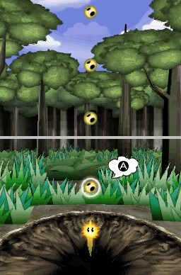 This is Sky Jumper Sol, a new DSiWare game developed by Nintendo. The objective in Sky Jumper Sol is to pull yourself the top of every stage.