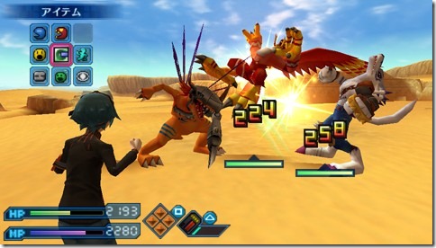 In battle, you give commands to Digimon in real time. The more intelligent your Digimon is, the more commands you can give it. However, if you pound out too many commands, you’ll just stress the Digimon out and they’ll start ignoring commands.
