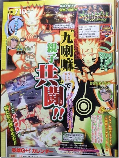 Minato can transform into Tailed Beast Mode when he uses an awakening. The scan also shows a combination attack with Naruto.