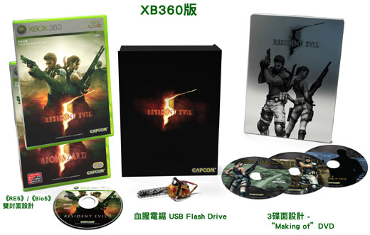 Hong Kong – Making of game DVDs, bloody chainsaw 2GB USB flash drive, and Resident Evil 5 with a reversible cover (Biohazard or Resident Evil 5) for $498 HKD ($64).