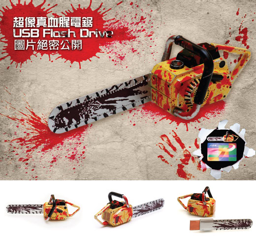 The chainsaw USB drive is about the size of a credit card. You pull off the blade and plug it into your PC to use it.