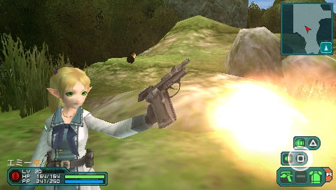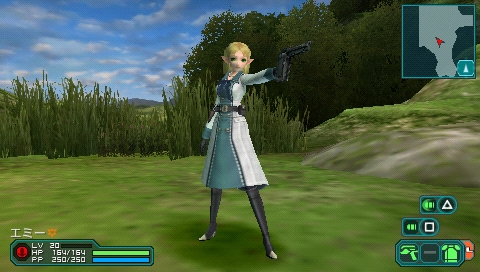 Does that character look familiar? Some Phantasy Star Portable 2 character is cosplaying as Leanne aka Reanbell in the Japanese version, End of Eternity. You can download a clothes pack with Leanne’s default outfit and B-84 gun. Like other Phantasy Star Portable 2 crossover content, these items are free. Just log on with a Japanese PlayStation Network account to get them.