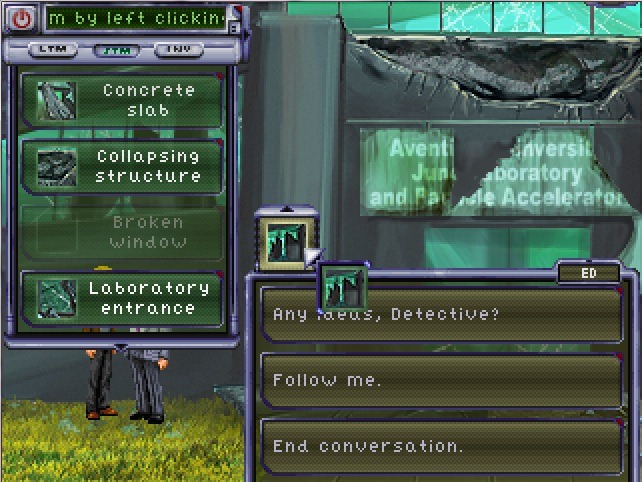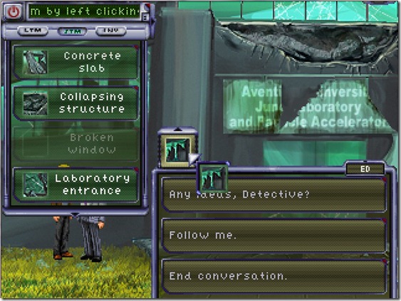 However, some of these puzzles will drive you absolutely nuts. The image above is of a puzzle that took me an hour and a half to figure out, as you have to drag loose wires around the pins to fill in the lines and attach the top terminal to the bottom, making all the lights light up to open a door. It was the most frustrating moment of the game and I have no shame in admitting that I had to go to Wadjet Eyes’ Resonance forum to find the solution. I want to point out that this puzzle is optional, as you can just go around and do an easier challenge to proceed, but you get extra points for doing it. It’s important to know that Resonance does have those puzzles that will make you want to give up. Just like the old school adventure games did! Resonance‘s presentation is also fantastic. It’s an entirely 2D game with incredibly detailed sprites. It’s the kind of game I wish could have existed when I was a kid, because this kind of presentation would have blown me away back then. Of course, even now I’m really impressed and it’s obvious that a lot of time and effort was put in to call back to classic games while also being something that can stand up and look gorgeous alongside newer releases. Not to mention it has fantastic voice acting! I didn’t expect that, considering it’s an indie game. The only thing Resonance could really use is a tutorial. It doesn’t explain that you can drag items in the environment into your taskbar to your short term memories so you can bring them up in conversations, or even how to look at short term and long term memories. It pretty much assumes that you’re either familiar with how adventure games work, especially when it comes to combining or separating items. Resonance is a love letter to old school adventure games. It’s well written, has puzzles that will definitely make you think and has wonderfully retro graphics combined with modern control schemes. Not to mention the puzzles are actually challenging and always pertain to the story. They make sense and really make you think about what you could and should to move the story forwards. Most importantly, I’ve played Resonance twice and each time it feels like I’ve learned or noticed something new. Food for Thought 1. You usually have as much time as you want to explore a situation and come to a solution, even if the characters seem like they’re in a hurry, so don’t feel like you have to rush. 2. Resonance reminds me vaguely of Maniac Mansion, what with the party of characters who each have their own skills that could be useful in different situations. 3. There are little trophies built into the game and if you perform segments in certain ways or order, you can earn points for being efficient or doing certain things. 4. Logan Cunningham, who voiced Rucks in Bastion, is the voice Detective Bennet.