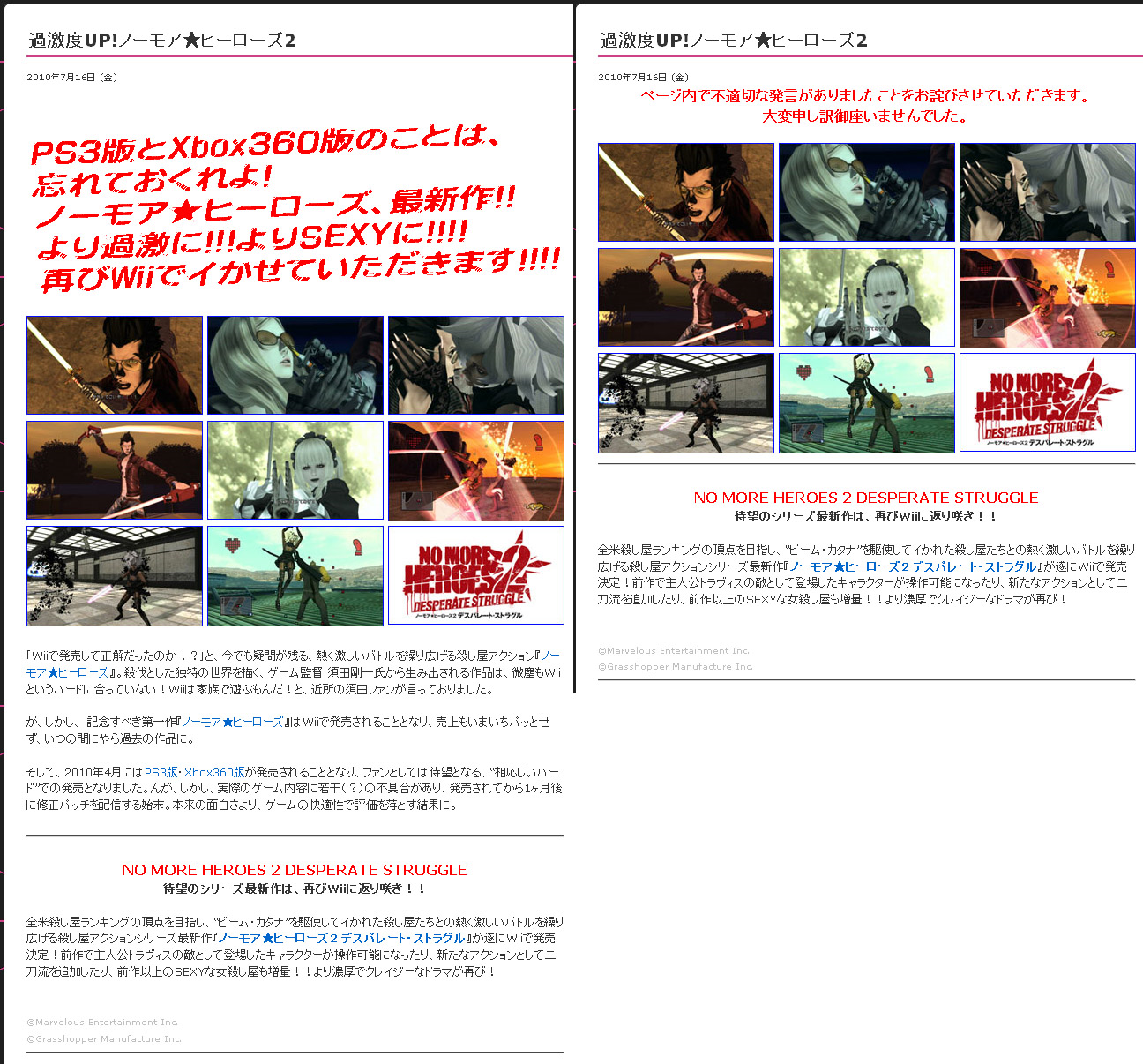 “Forget what happened with the PlayStation 3 version and Xbox 360 version,” HMV wrote on their No More Heroes 2 product page. “A new No More Heroes!! More extreme!!! More SEXY!!! It’s reborn on Wii!!!!”