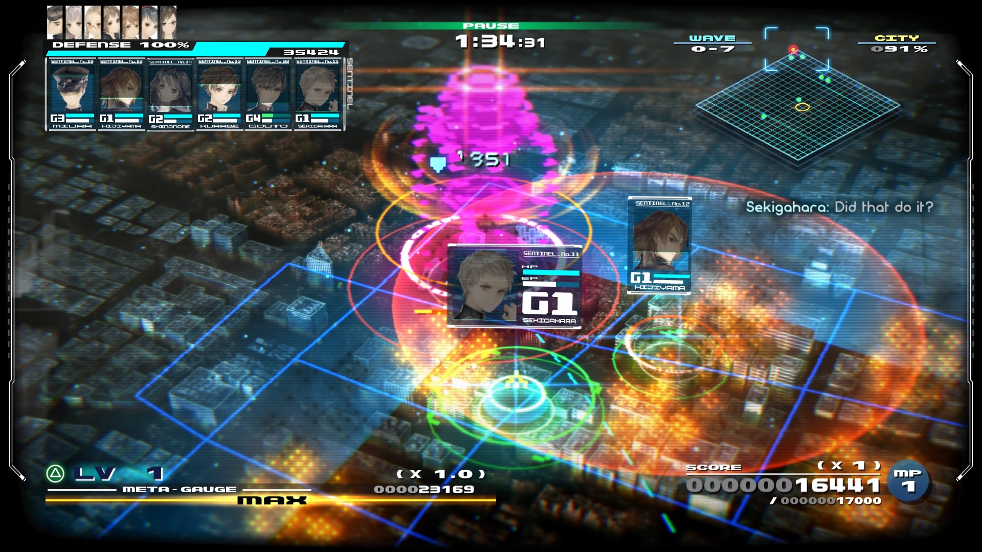 But what I love is that even though the adventure is arguably the primary focus, the real-time strategy segments are also genuinely fun. If Vanillaware and Atlus wanted to release a whole other fandisc that only had additional terminals to defend from different waves of kaiju with certain Sentinel selections, I would be onboard with it. Each Sentinel belongs to a different generation, which influences its movesets and capabilities. So since Takatoshi has a first-generation Sentinel, it has physical attacks that allow him to move and inflict massive, close-range damage. Keitaro has a third-generation unit, so plant him somewhere and let him use his railgun to attack enemies at range. I also have to say I dig the aesthetic and objectives for the RTS segments. They’re never overly long. After a while, the Terminals will eventually obliterate all kaiju on the map. The Sentinels can be bound by laws of reality that make sense, like being forced to move along roads, rather than walking across and standing in the middle of buildings. Well, unless its a fourth-generation model like Ei’s, which actually can fly. They make you think, they move swiftly, some can genuinely be challenging if you go with the Normal or Intense difficulty.