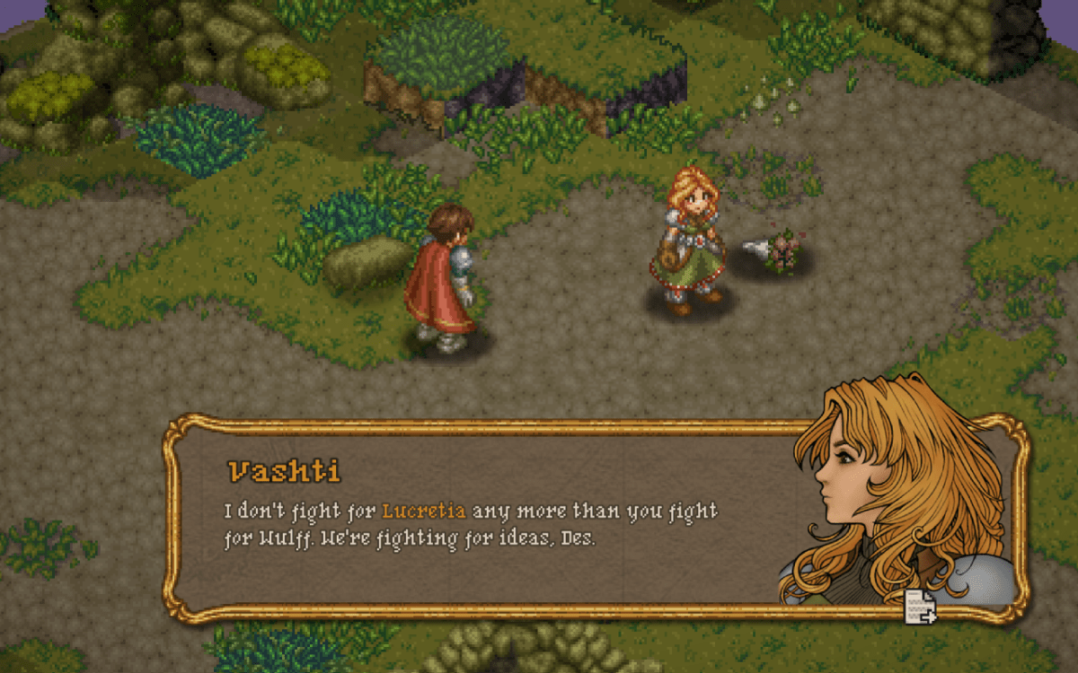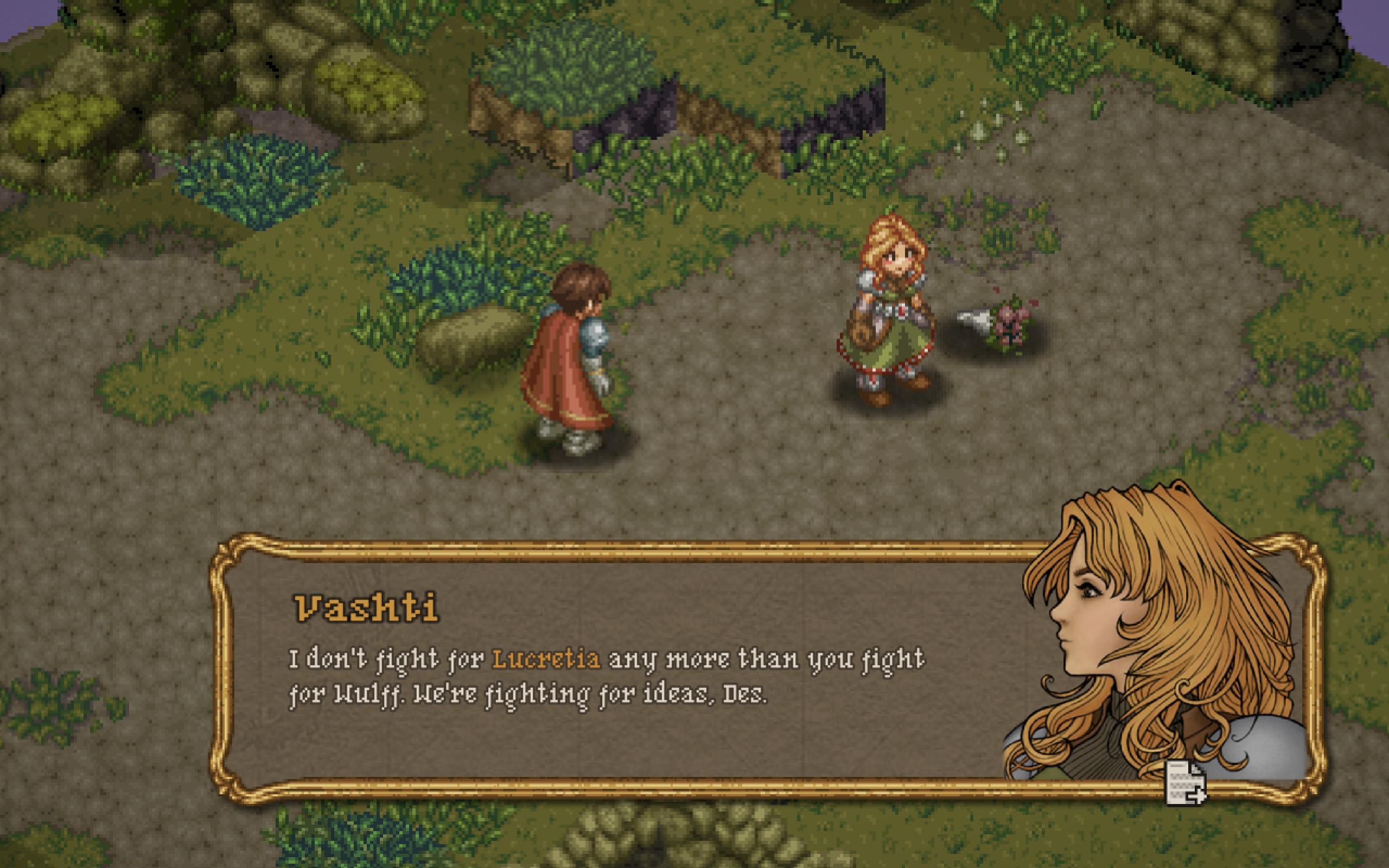 It’s always interesting to see what happens when a Kickstarter project finally appears. Arcadian Atlas appeared on the crowdfunding site back in 2016, and it’s finally shown up seven years later in 2023. While it’s fine and has some great spritework, it also feels quite unbalanced and often a little too easy. With Arcadian Atlas, players get to see the affects of royal decisions and wars on the people in power and those around them. When a king dies, his wife Queen Venezia succeeds him and declares her stepdaughters illegitimate to get them out of the way. However, that doesn’t mean they disappear. Lucretia begins to fight to reclaim her birthright, with the warrior Vashti on her side. Vashti’s lover Desmond remains in Venezia’s employ. Meanwhile, Lucretia’s sister Annalise is finding her own potential sense of power and recourse. Throughout the story, we see different sides of the conflict and, as you might expect, become pivotal players in the fate of the world. Especially since at some specific moments, we get a chance to make decisions that can shift the course of the story.