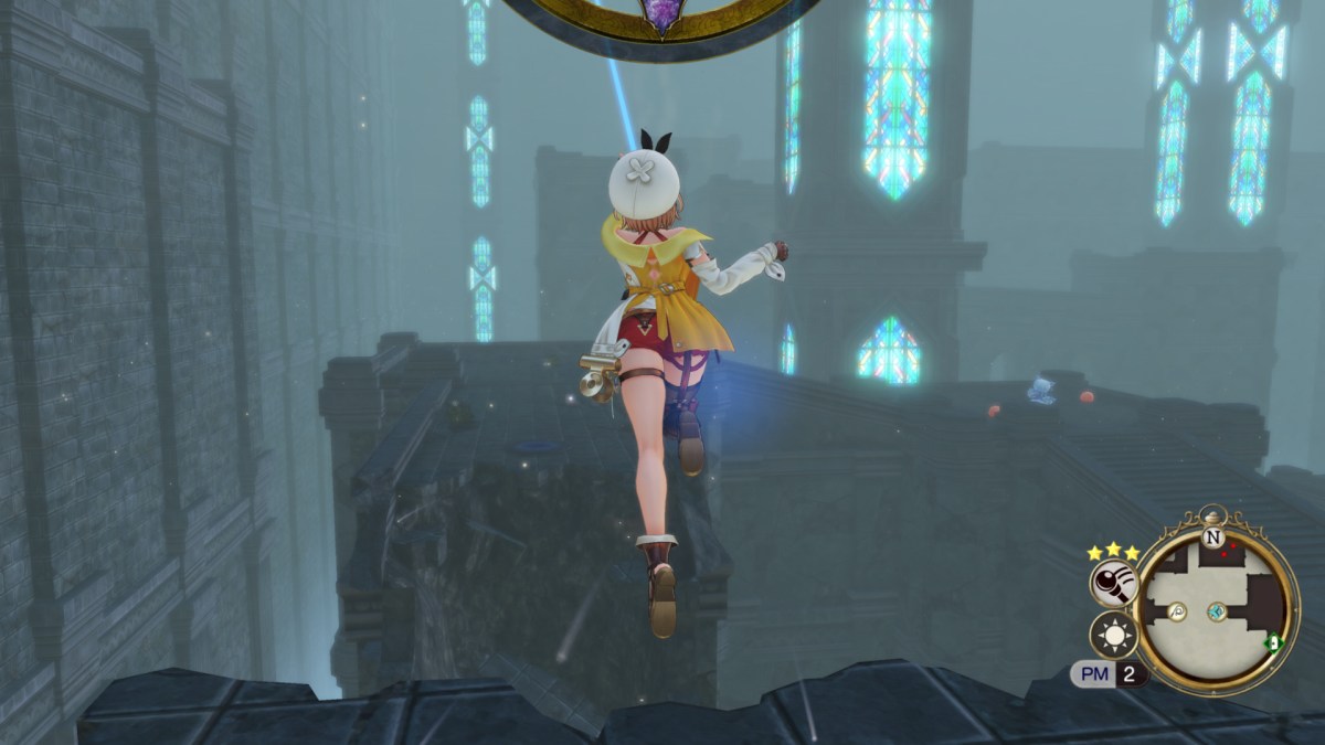 Investigating ruins and uncovering mysteries with the compass to piece together legends make it feel like Ryza’s moving forward, sure. But also, the more active nature of Atelier Ryza 2 helps a lot with that. A lot of these new elements were alluded to ahead of launch. Ryza can climb, crawl, dive, jump, swim, swing, and even summon creatures to get around the world. She’ll gather materials by approaching them, swinging her staff, or using tools. But it also feels like, in general, she’s doing more than before.