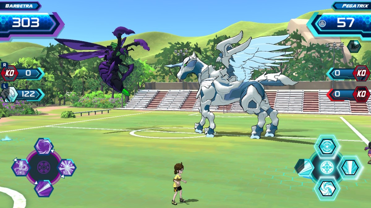Each of these fights drag on. Energy spawns at a rate of about two to three, sometimes four, Bakucores at a time. Sometimes, running up and actually touching one might not trigger the action to grab it and your opponent might take it instead. The skills are represented by icons and not text; I hope you memorized which skill you assigned to each slot! Also, once a Bakugan’s skill triggers, you have to sit through the animation. Where a typical Pokemon or Yo-kai Watch fight tends to last one or two minutes, even an early Bakugan: Champions of Vestroia fight that doesn’t involve a full 3v3 team will last at least five minutes.