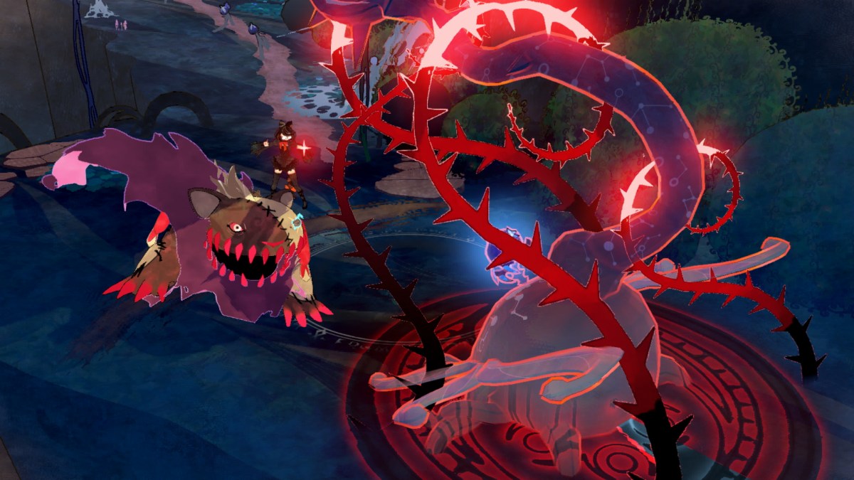 It’s all charming in a way I didn’t expect. Bayonetta Origins leans into the fairy tale aesthetic hard, with a dreamlike, stained glass world and a narrator following all of Cereza and Cheshire’s actions. We see two young, damaged individuals coming into their own and learning not only to trust in themselves, but each other. There were moments I genuinely worried about characters’ safety, and PlatinumGames was careful to show the development relationship through story beats and gameplay, rather than just tell the player “now the witch and demon are trusted allies.” Unlike typical Bayonetta games, which involve a frantic flurry of action, Bayonetta Origins is a more thoughtful adventure. There are battles here, to be sure, though Cheshire handles that. But instead the player is left to find a way to traverse the winding, overlapping Avalon Forest by making use of both characters’ abilities. As an apprentice witch, Cereza can use magic that could make plants grow or bind enemies. Meanwhile, Cheshire involves more brute force that can knock aside bramble, fences, and foes. The two need to stay nearby one another, due to Cereza’s magic powering Cheshire’s larger form. However, there are times when environmental elements in Avalon Forest or Tir na Nog stages force the two apart to handle actions independently to ensure both can progress.