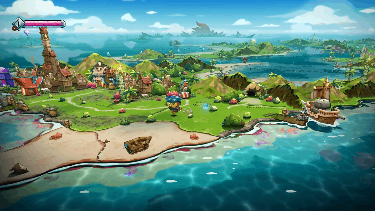 The Purribean Sea of Cat Quest 3 is small but dense. It’s an assortment of islands dotted around the ocean, all containing their own secrets and treasures. The ability to sail around all these places right out the gate offers a huge amount of freedom. Even within the story, you never fully feel like you’re being funneled into a specific direction. While there is a direct line of events that need to be followed, many of your objectives branch off into multiple locations that can tackled in any order, whether that’s collecting keys for a tower or defeating different pirate captains.