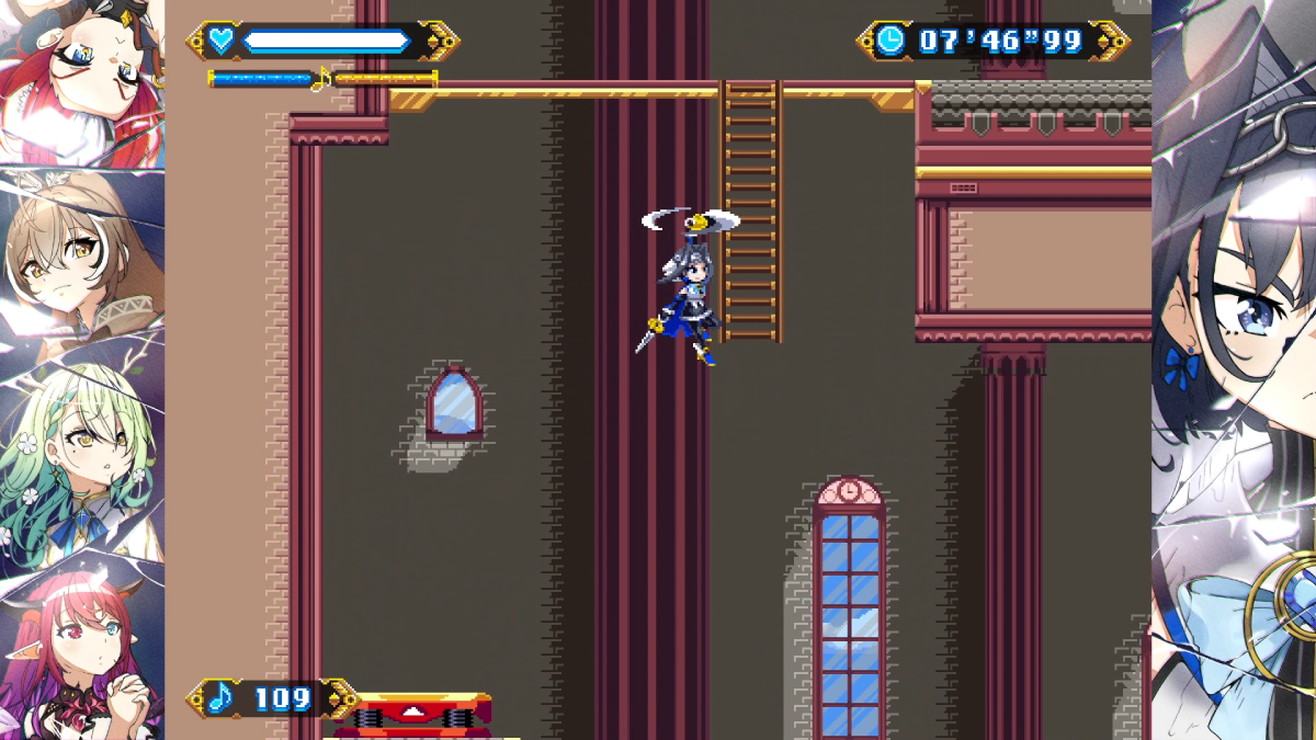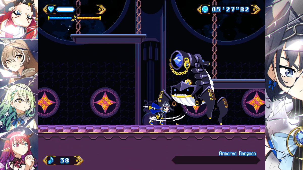 The real question is, how well did I navigate the writing of Chrono Gear: Warden of Time when I have no knowledge of Hololive? Honestly, pretty well. There’s a quick introductory cutscene that explains that Kronii is part of the Council that governs the universe, along with the other members. A mysterious figure has broken Kronii’s Chrono Gear and broken the space-time continuum. Since it’s her mechanism that’s been broken, she’s tasked with collecting all the Golden Gears that can be used to fix it. That’s all you need to know, now go jump around a bit.