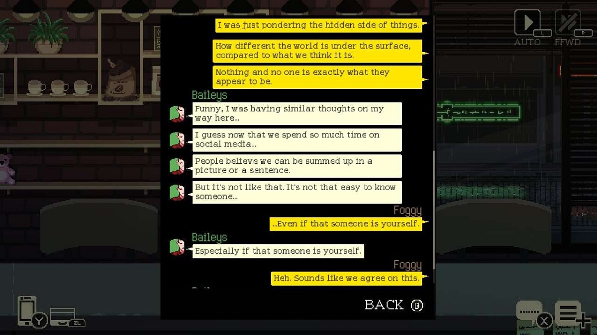 Coffee Talk boasts beautiful pixel art and a wonderfully pleasing aesthetic, from the colors to the music. I unironically listen to this kind of “coffee shop music” sometimes when I work, so it was really easy to stay focused on the slow-paced story. The new “main” characters Lucas and Riona are really interesting from both a design and a narrative perspective. A little detail I liked was Officer Jorji making a dumb dad joke on the game’s Twitter parallel, and Lucas (essentially a nice Paul brother) was the only person to like it. Jorji’s posts don’t tend to get a lot of likes compared to a lot of the other characters. So Lucas liking Jorji’s bad joke endeared me to him after his somewhat rambunctious introduction. One of the main themes in Coffee Talk 2: Hibiscus and Butterfly is what we leave behind in our lives. Lucas and Hyde’s plots in particular really center on this. To my memory, I don’t believe I’ve consumed a piece of media that had this as a main focal theme. It’s an interesting one, especially in our current day, to tackle and the game does a great job on linking this theme with the anxieties that a young adult faces as they enter society. Everything always moves so fast and there is always a need for more. I keep bringing up Lucas and I don’t even like him that much. But his line, “What’s the point of being born if nobody is going to remember us?” really resonated with me. What legacy—tangible or invisible, permanent or fleeting—do you suppose you’ll leave in this world? Clearly, the characters are the main selling point of the game. After all, the only thing you really do in it is watch their interactions. But there’s something really inorganic about the conversations. Everyone feels overly considerate to the point that they no longer feel realistic, even though the characters themselves are. They all have their good points and their flaws, and their problems are ones that are definitely relatable. But there is no tension in any of the arguments or troubles since the characters all talk to each other or you in a way that goes so out of the way to not hurt any feelings that it’s unnatural. Or supernatural, I guess you could say. Jokes aside, it’s pretty crazy how there is such a wide spectrum of personalities, yet everyone feels the same. This is because they almost all, barring vernacular and tone, talk in the same overly-sensitive manner. So the conversations can get a little monotonous, especially if you play multiple hours in one sitting. The lack of a common plot thread can add to that. While Hyde’s issues of wanting a new job where he can make a mark (and have fun) can link up with Lucas’s, it’s a little hard to tell why we spend so much time with, say, Aqua and Myrtle. Silver and Amanda, despite their interesting premises, also kind of just faded into the background. So it sometimes feels like you’re just reading a cute but ultimately “meaningless” short story. I suppose that’s the true Seattle coffee shop experience though. Coffee Talk Episode 2: Hibiscus and Butterfly is a slow and comfy game with legitimately interesting subplots and a beautiful aesthetic. It’s one that feels the most enjoyable in short bursts rather than a long marathon. For those who wish solely to experience the brewing factor, there are modes to experiment with the various ingredients and create drinks based on customer demands. There’s not much of a time attack, so it feels very casual, much like the rest of the game itself. Coffee Talk Episode 2: Hibiscus and Butterfly is readily available on the PS4, PS5, Xbox One, Xbox Series X, Nintendo Switch, and Windows PC.Review: Coffee Talk 2 Presents Warm But Bland Comfort