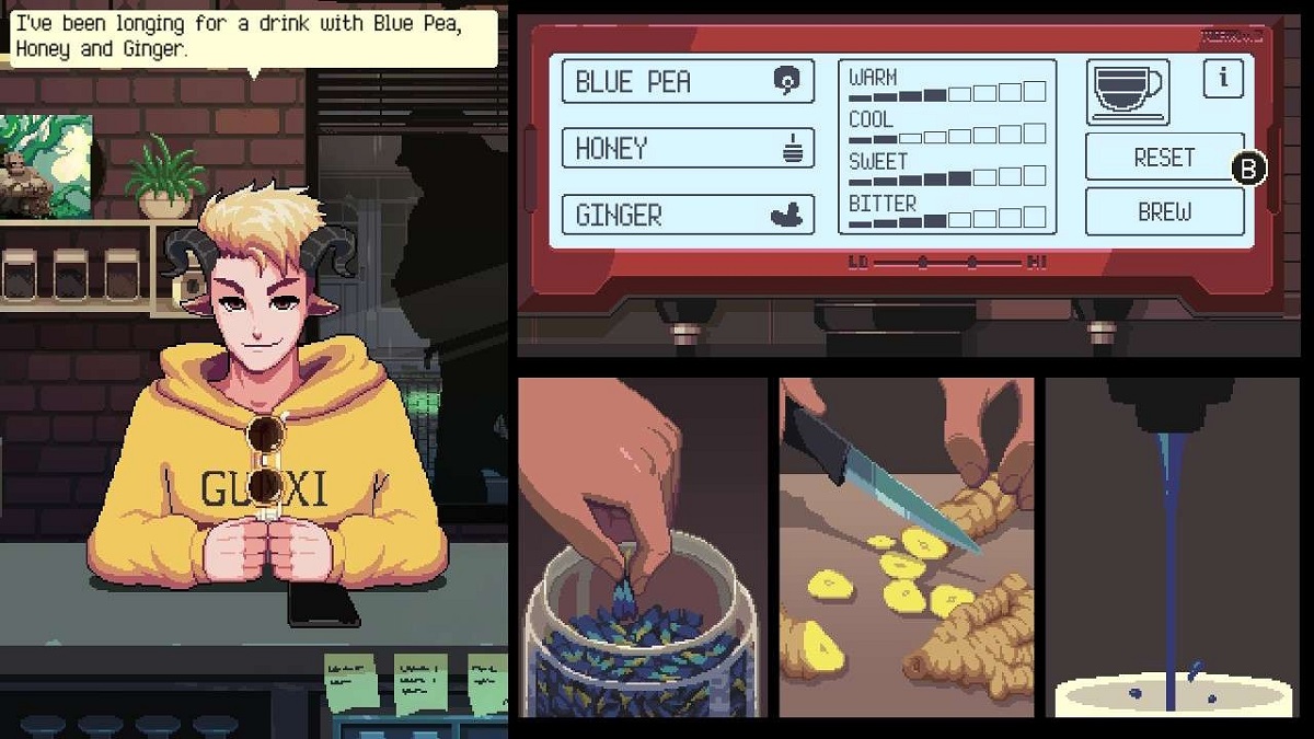 The days are getting longer and the weather is getting hotter, but Coffee Talk Episode 2: Hibiscus and Butterfly brings with it that sweater weather comfort. It is a slow-paced and comfy game that combines the visual novel and brewing simulator genres. As a game that mostly centers on its characters, it stands to reason that they’re all very likable. For better and for worse, the strong writing really hammers home just how West Coast everyone is. The premise of Coffee Talk Episode 2: Hibiscus and Butterfly is more or less the same as the first game. You play as the owner of the cafe Coffee Talk, where beings both natural and supernatural gather and, well, talk. Each character has a very distinct personality and goal, with connections that they forget either throughout the course of the game or already had from the last one. I actually never played the first game, but I never felt lost on who everyone was. The game did a great job introducing everyone in a very natural way. New additions aside from more characters are the hibiscus and butterfly pea teas. Incidentally, adding normal milk to a tea with dried hibiscus in it IRL is absolutely horrible. I cringed until I realized I was making lattes in the game.