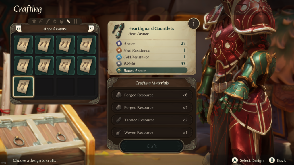 Then there’s the crafting system itself, which lets you craft armor and weapons from up to 4 materials each with their own stats. Metals offer heavy physical protection as you might imagine, while furs tend to be lighter and more insulative and each individual resource further leans towards physical, thermal, or balanced protection. There’s a lot of interesting little detail there and room for crafting specific armor sets for specific tasks, though I do wish the game gave you an idea of the break points for elemental resistances such as when you’ll be insulated against general ambient temperatures or your own spells. Lack of information is kind of a recurring bugbear in Eternal Strands, actually, as the game also doesn’t tell you what actually improves when you level up a spell either.