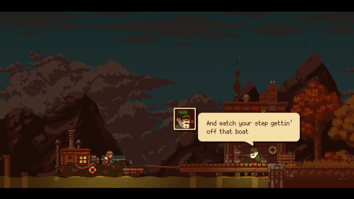 Gunbrella is an unusual sort of game. It’s a platformer with run-and-gun elements. However, the execution and implementation of the story and quests into all of its parts makes it feel like more than that. It can often feel like more of an adventure, given times when you’ll need to collect items like rats or keys or get information from a specific person to progress. The blending of these things are all well handled and, some bugs that could be addressed by the time you see this aside, it’s a generally fascinating little game. Gunbrella begins with a man on a mission. After finding a loved one dead and the titular weapon left on the scene as the only clue, the survivor set out for information and, presumably, revenge. So, this person heads to the city of Allendale to get a better idea of what’s going on and get closure.
