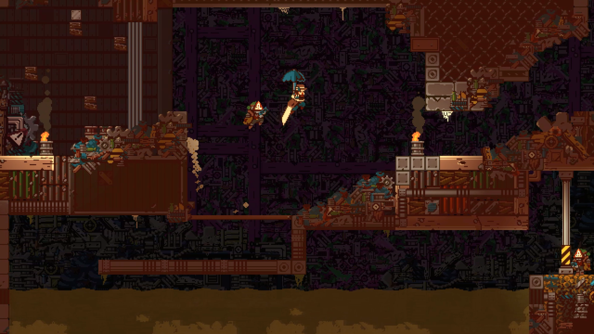 Doinksoft does a fun job of integrating Gunbrella's story into platforming gameplay, as well as making use of its "gunbrella" mechanic.