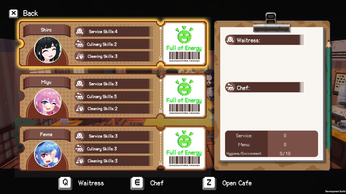 While you are the Fuwa Fuwa Cafe manager in Maid Cafe on Electric Street, you will be serving up customers and engaging in some very light management tasks, and making some decisions, this isn’t really a management game. It’s more of a visual novel (with multiple endings) that’s about getting close to the women working as maids, and enjoying life in Japan. Shiro, Favna, Honoka, and Miyu could be flesh out a little bit more as individuals, but they’re pleasant people who I enjoyed meeting and working alongside. You make choices as you work alongside them, go about your day, and spend some time after work.