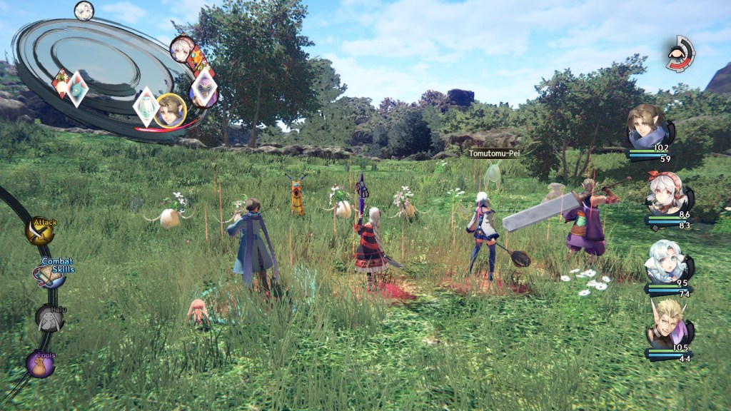 Even the battle system doesn’t feel fully thought-out, just implemented as if to tick a box on the list. Monochrome Mobius combat isn’t technically turn-based, but is set around the concept of “Action Rings” that characters and enemies “race” around to get to their turn. Attacking enemies (or taking hits) knocks the target back, or even resets their progress if they’ve been “Staggered”. Players can speed up their turn frequency by “Ascending” into one of the inner Action Rings, too. You can also apply buffs and avoid debuffs by moving around the rings. Even certain spells don’t cast their effects on a target, but on a specific portion of the action ring, meaning that characters gain its effects only when their icon is passing through that portion. In theory, the system allows for an interesting combination of timing management and positional management. Players can manipulate the order of actions by targeting the right enemies and using the right abilities. For example, you could try to knock a boss “back” with a certain skill to ensure he takes his turn after your characters have had a chance to heal or buff up.