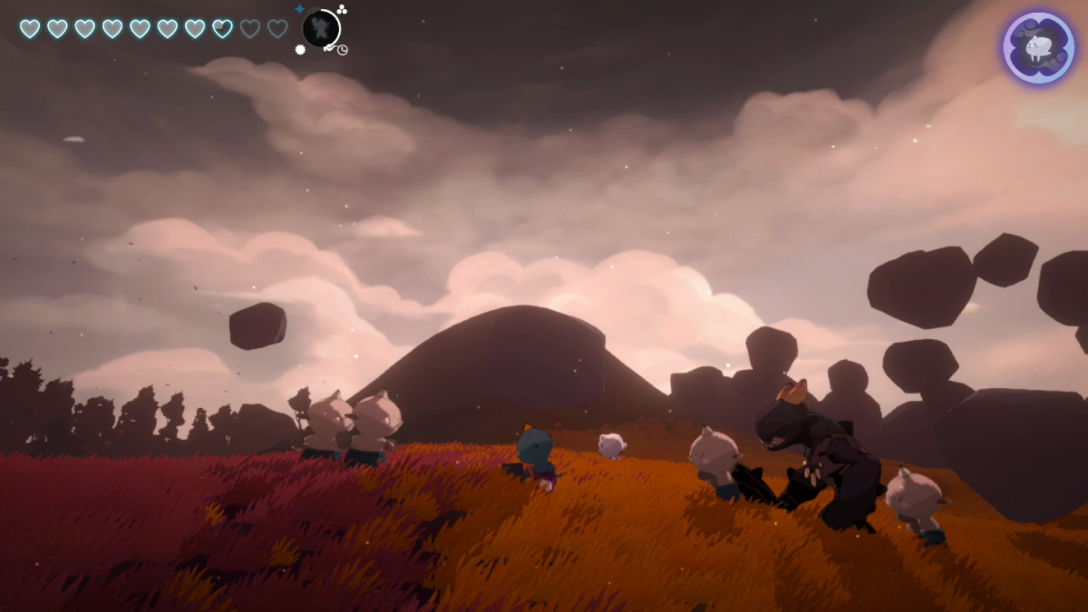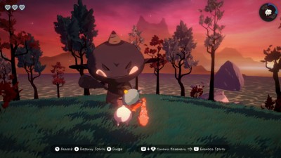 When not in combat, Kisejima is free for you to explore, where you can take in the game’s atmosphere at your leisure. Visually, ONI: Road to Be the Mightiest Oni is simple, yet effective. Character designs are expressive and charming, all coupled with some excellent animation. Kuuta running around the island on his little legs as he lugs all his possessions on his back is adorable. In cutscenes, he’ll typically express himself with exaggerated movements and expressions that make him extremely likable. The environment is interesting too, with rolling hills and forests combined with magical floating rocks and other strange elements that add a lot of visual flair. It’s such a shame that there’s so little to do in the exploration parts of the game. You can pick up collectibles, including mushrooms that act as currency, or diary entries from previous visitors to the island. You can also obtain spirits, which can increase your health if you can get them back to a save point without being taken out by aggressive oni. However, that’s often all there is to find, and the game quickly falls into repetition as you find yourself picking these things up over and over again with no real variation.