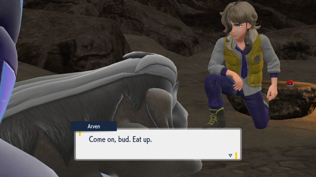 The open-world approach? Yeah, it works, for the most part. It’s a bit aimless at times, and the structure leads to some serious level spikes near the endgame as it keeps most of the world accessible without a robust level scaling system in place to make that work a bit better. It’s fun to wander around and find stuff, though, and the movement eventually feels as satisfying as Legends. While the Pokemon themselves have been cute and endearing since the very beginning, Pokemon Violet and Scarlet manage to present a world of characters that earn our genuine empathy much more often than its recent predecessors. The characterizations are still rather paper-thin, but its core cast still manages some people we truly like. We’ll avoid spoilers so you can experience things yourself, but one gym leader in particular was exceedingly relatable. And the Arven storyline? Boy. We can’t not talk about the tech issues, though. We experienced full freezes, massive slowdown and the incredibly obvious visual downgrades to make Game Freak’s open-world setup run at a decent speed. The visuals were a similar issue in Legends, so you know if you care about that. Here, though, there are more elements in the middle-to-far-distance to cause the incredibly slow animation countermeasures to kick in.
