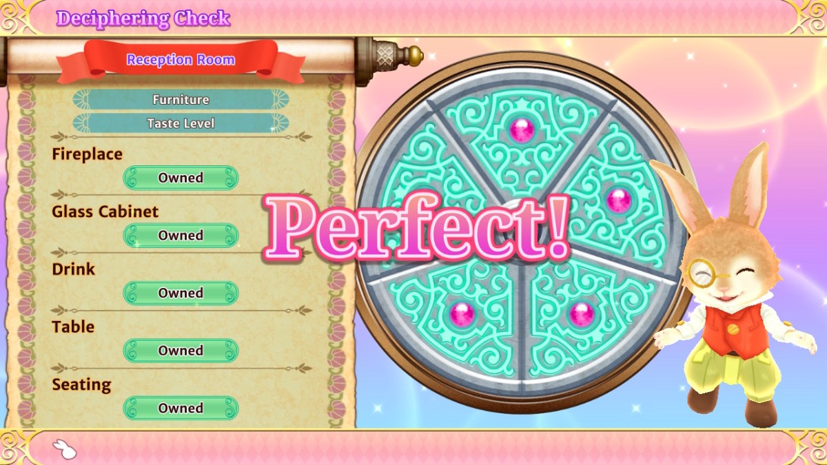 The only downside is, Pretty Princess Party has some elements to it you’d more commonly associate with free-to-play games. Rooms’ tablets need to be deciphered. Okay, fine. You need to pay Lumina to have a rabbit figure out what the requirement is. That triggers a timer. The lowest I’ve seen is 30 minutes, which seems a bit long for a game where a minigame definitely takes less than five minutes.