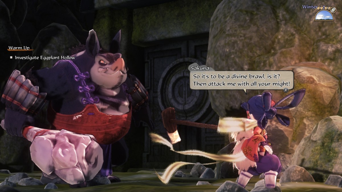 This isn’t to say Sakuna: Of Rice and Ruin isn’t satisfying. As you do learn skills, complete quests and sidequests and figure out how to properly farm, you might begin to feel very accomplished. It also helps that the combat feels incredible. The fights, which involve hacking and slashing with items like hoes, sickles and sledgehammers, are great. Using her divine raiment lets you zip behind an enemy or perform in-air juggle attacks that make a 10 or 20 hit combo feel like you’re fooling around. And, since the special attacks get more effective and level up as you use them, it’s like the game rewards you for relying on the moveset that works for you.