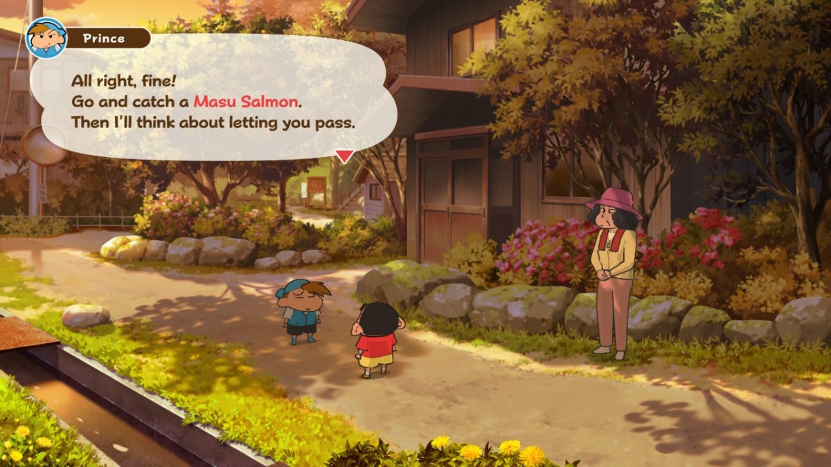 Since this is a life sim, the gameplay loop is quite lowkey. After Shinnosuke wakes up and has breakfast with his parents and grandparents, we are left to spend the day however we’d like. If we decide to stay around Akita, that might mean tending to the garden and the things we’ve grown, hanging out with the kids and neighbors nearby, fishing, collecting bugs, and generally experiencing a relaxed daily life.