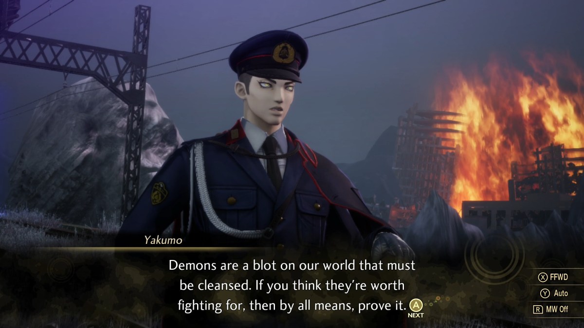 Of course, that element of choice is also present throughout the campaign. Everyone important is always listening. Your human allies! Aogami! Amanozako, and the major players in the conflict! When an especially poignant decision comes up, Shin Megami Tensei V does something I love. It focuses in on the Nahobino’s face. When you highlight a choice, the one you don’t is blurred. You feel the gravitas of the moment, because it forces you to focus. Though there are also plenty of times when people like Aogami and other demons also ask your thoughts on things. Speaking of style, boy, does Shin Megami Tensei V have it. This is a gorgeous game. (Especially on an OLED Switch, as things are extra crisp.) The demons are all defined, both in terms of appearances and personalities. The way they look and sound are always so distinct. The major NPCs are fashionable and look incredible. You can see the extra care. Even the environments are rich and fantastic at setting the stage. You know exactly how to feel at every moment, due to color choices, design decisions, and the soundtrack. The only quibble I have is that if you are especially far away from a Miman, the frame rate for its movements drop. But then, it’s such a minor thing, and it actually made them more noticeable when I’d scour the horizon.