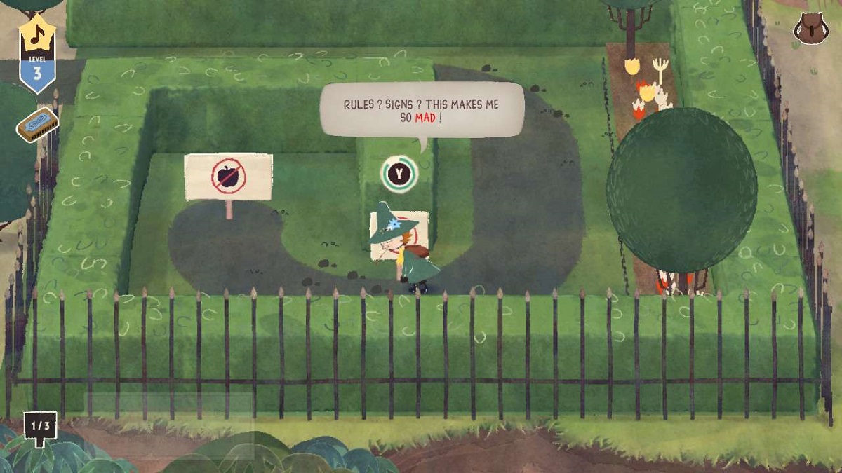 As Snufkin, you wander around Moominvalley in search of Moomintroll. You can help out the residents to gather inspiration, which will level up your music. Snufkin can play three different instruments, and each one does something different. For example, the flute can calm down hostile creatures and the harmonica can help to make animals do his bidding. There are also stealth portions where Snufkin has to sneak around parks while avoiding the police officers so that he can vandalize the place and get rid of them. The game isn’t very hard, which makes it a nice one to relax to. My biggest complaint is that the navigational sign at the bottom to tell you where to go for your quest doesn’t always work. But I think that the map layout is a bit quirky for the compass-style in-game navigation. Fortunately, you can pull out the map at any time.