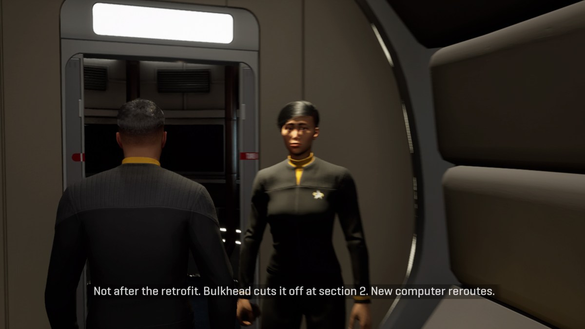 It can be difficult to take situations seriously in a tense adventure game when the most grave moments are accompanied by the voice acting for the first two or three words in a sentence repeating, amorphous blobs of “energy” popping in, and unnecessary quick time events (QTEs). Unfortunately, that’s exactly what I faced in the PS4 version of Star Trek Resurgence. Poignant moments could be punctuated by unnecessary inputs. Character expressions became comical. First, Star Trek Resurgence takes place around the same time as The Next Generation and Deep Space Nine. The USS Resolute and its crew went through a lot. A warp core experiment led to an accident and malfunction that killed multiple people. The ship itself ended up practically torn apart. It’s about to head out on a diplomatic mission to hopefully stop a war between two normally peaceful groups. Players follow this process through two viewpoints. One is Engineer Carter Diaz, a human who was a member of the crew when the incident happened. The other is the new First Officer Jara Rydeck. She’s a new staff member taking over someone who died in the tragedy and faces some opposition both due to being a replacement and a member of the Kobliad race that will essentially die without a proper and consistent supply of deuridium. (If you followed Star Trek: Deep Space Nine, you’re aware of the scarcity of that.)