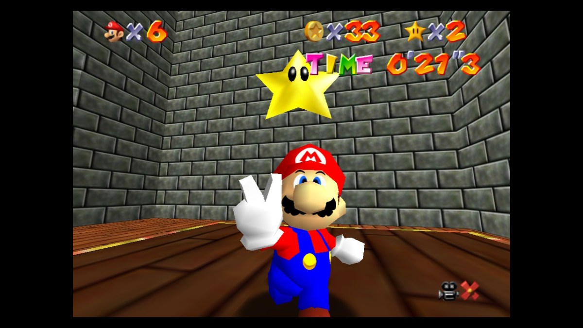 The first 3D Mario game, Super Mario 64 went a long way in defining what movement should feel like and generally how polygonal games should work. It’s seminal. It’s a breakthrough. These things are still true. But there’s no denying its age. Part of setting the groundwork for things to come is that, well, games that build atop these innovations have a head-start and take advantage of it. The controls were great for the time, but now? Even in the context of Super Mario 3D All-Stars, and especially on a platform with a game like Super Mario Odyssey, the rougher aspects grate. It’s faithful. In that respect, it’s likely what players want, rather than something that feels “wrong” and breaks old strategies. But it’s something to keep in mind. It’s also tougher to update. The Super Mario 3D All-Stars version of the game remains in a 4-by-3 aspect ratio. This is likely because of the technical challenges of widening an early game like that. Much has been made of the compilation’s emulation-based approach, but there isn’t another approach, outside of a full-scale remake, that would fix levels being designed without the assets to fill those spaces or platforming becoming too difficult if the camera is zoomed in to a cropped view. What’s here, though, is nice! Interface elements are crisper than we’ve seen in Virtual Console releases. The resolution bump makes environments look nicer. The control scheme works well even without the original controller’s peculiar configuration. It also has a couple of fixes we didn’t see in the West, because it’s based on the Japan-only “Shindou” version. This Nintendo 64 re-release added more fixes onto the international version’s work, along with Rumble Pak support. It’s mostly the same and likely only speedrunners will care about those patches, so most people are just getting a stable version of the game with some force feedback.