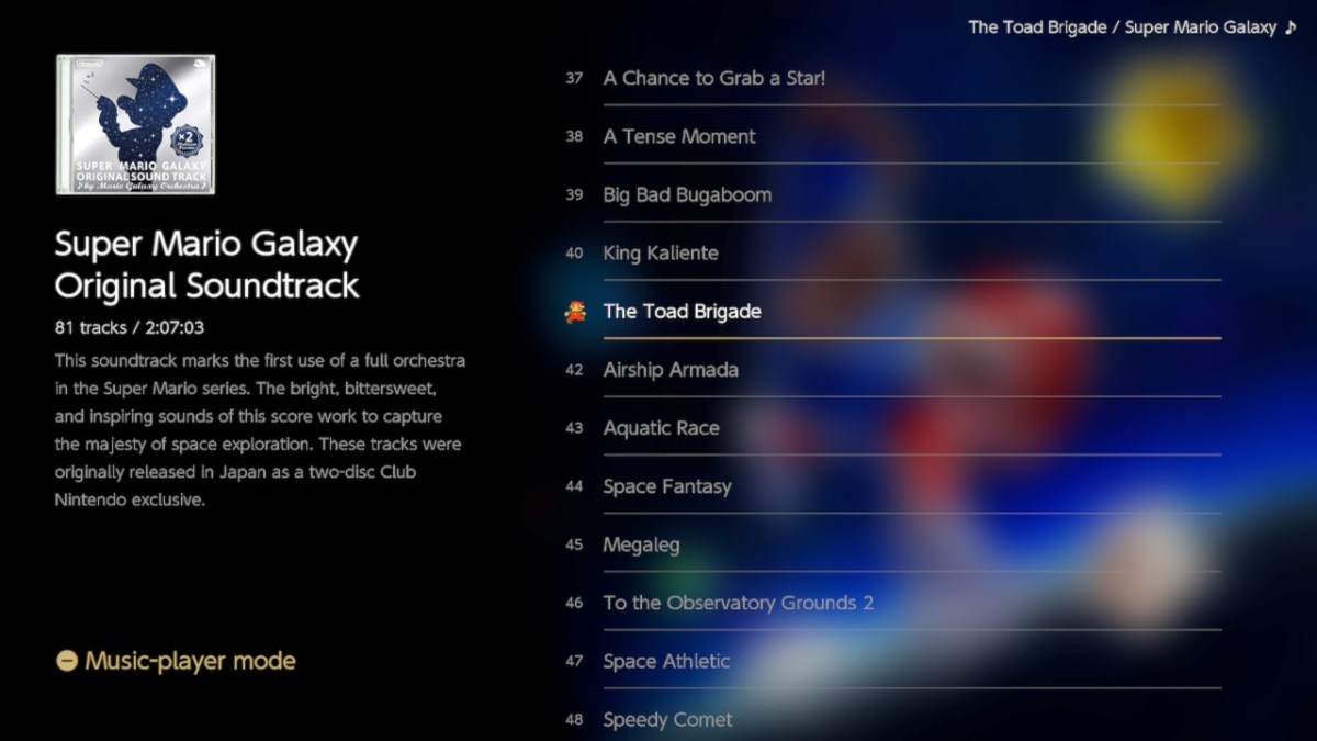 Outside of the three games themselves, there’s not a lot to Super Mario 3D All-Stars. The inclusion of a full music player with all three soundtracks is a welcome bonus, as it was in games like Super Smash Bros. Ultimate. The Galaxy soundtrack is the clear star here. With its full orchestral recordings and sweeping themes, it’s so much of a standout that Nintendo still regularly uses its tracks at events and in promotional material. So it’s nice that it’s here, and it’s also nice to have access to the nostalgia of Super Mario 64‘s tunes. (If you replay Super Mario Sunshine in this collection and still somehow want to listen to those songs more, we’re not sure what to tell you.) And that’s it! It’d be nice if Nintendo would acknowledge its rich history in a collection like this and include more supplemental material for these beloved games. It’s just not here. You’re buying a polished-up version of one of your favorite games, along with another game you probably like and then a third one that you could probably take or leave. No matter your ranking, that’s probably what you’re looking at here! So rather than looking at what this collection could have been, it’s easier and simpler to see what’s here and decide if that’s enough for you. If one of these games is an all-time favorite, that even these marginal adjustments make them the best and most convenient versions could make a sale for you. There’s nothing here to “fix” them if you didn’t like them the first time. You get what you get, and Nintendo’s confidence in the core products isn’t unwarranted. Super Mario 3D All-Stars is available on Nintendo Switch until March 31, 2021.