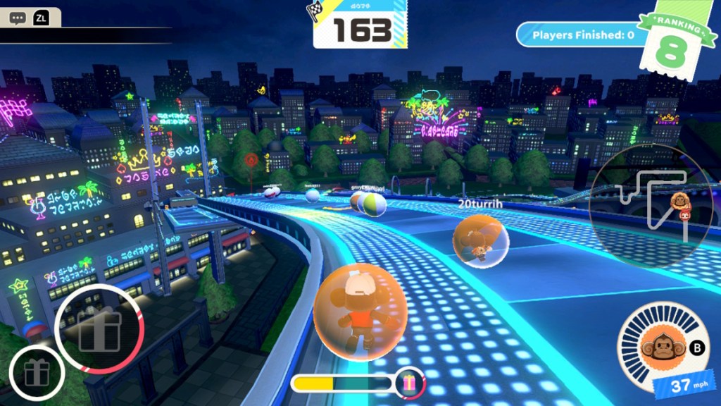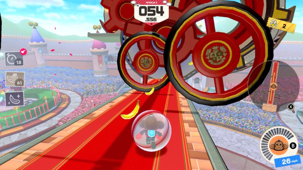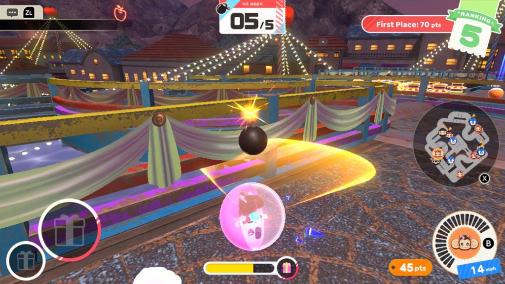 It’s multiplayer that brings the most new ideas to the ever-tilting table. Up to 16 players match up in varied modes: Race, Banana Hunt, Ba-Boom!, Goal Rush, and Robot Smash. In Race, you unsurprisingly roll through a checkpoint-laden course and try to reach the end as close to first as you can manage. This mode’s courses are designed to get easier as time goes on, keeping players in the hunt. It does mean that you don’t necessarily want to be first for most of the race, and also even the “easy” form of the tracks can be profoundly annoying when hit with multiple items or when the segment that troubles you the most just happens to not be a segment that gets easier with time.