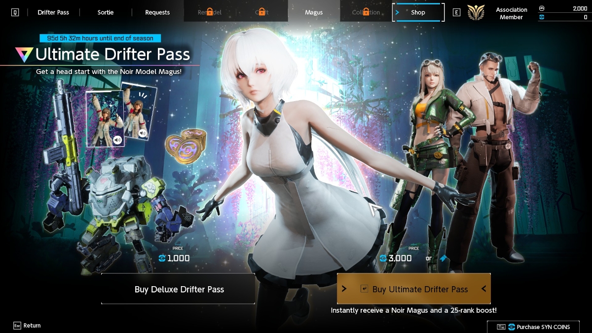 A majority of the entries in the menu consist of access to additional Magus and sets of outfits and accessories for them, so most of them are only for Magus cosmetics. Other than that, you can also spend the Syn Coins to purchase level boosts for the Drifter Pass, which also include the Deluxe and Ultimate Drifter Passes with additional exclusive bonuses.