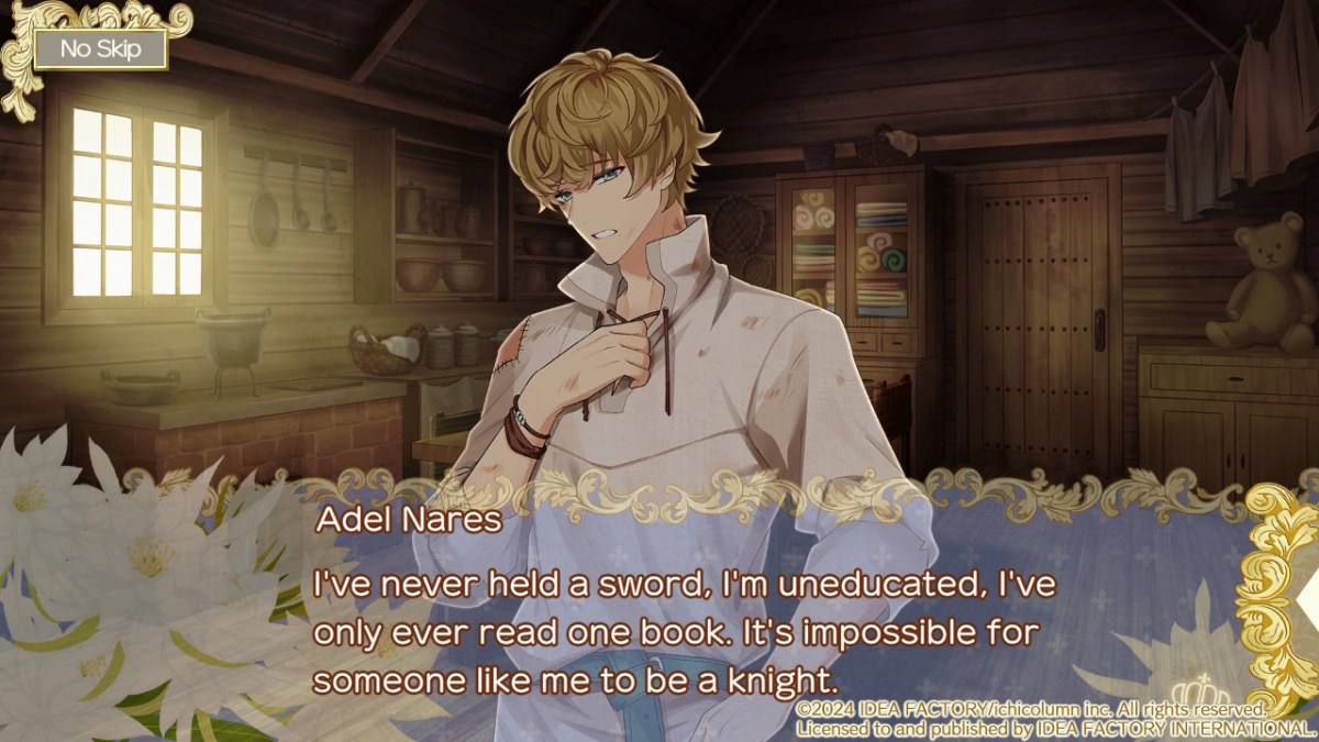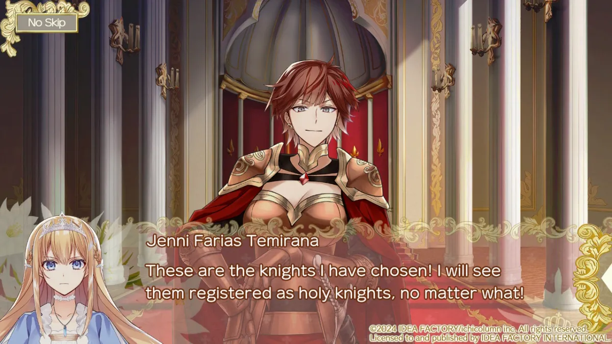 Temirana is a kingdom with, well, a lot of issues. There’s a caste system that restricts what certain groups can and can’t do. An obsession with luck permeates society. A foretold calamity, which regularly strikes the nation, is happening that year under Dirine’s Moon. In the midst of it, the third princess of the royal family comes of age, is expected to form her own knight order, and stay alive despite being hated by her family and cursed. On the plus side, Cecilia has a divine beast named Benetti Astella who is constantly by her side as an advisor and friend and an inexplicable light flashes when she needs to beware of life-threatening danger or should be aware of important individuals. After meeting the prince Josephy, farmer Adel, noble Tobias, blacksmith Milan, and Tobias’ servant and former orphan Kiya on the day of the Helis Duelm dueling tournament and seeing light when encountering each of them, she becomes determined to recruit all five to her knight order for the good of the kingdom and her survival.