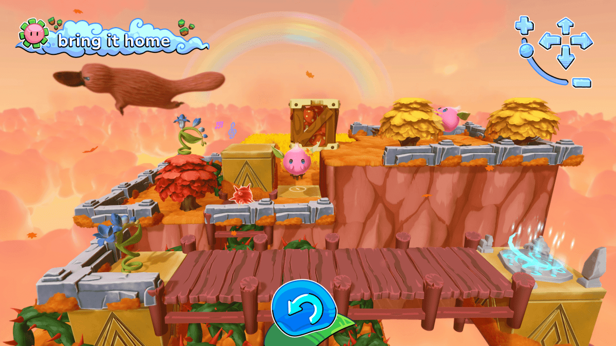 There’s honestly not too much to Tempopo’s story. Hana is a gifted girl who lives among musical flowers and creatures known as Tempopo. When preparing to lead the flora in a festive song, her conducting skills instead conjure up a tornado. All of the plants are blown away. This means heading to floating islands in a multitude of biomes and experiencing each season to recollect all of them and set them back up at home. However, not every island is peaceful, which will mean directing the Tempopo accurately in each space to avoid or use enemies to her advantage while also utilizing special abilities to get every flower to the goal.