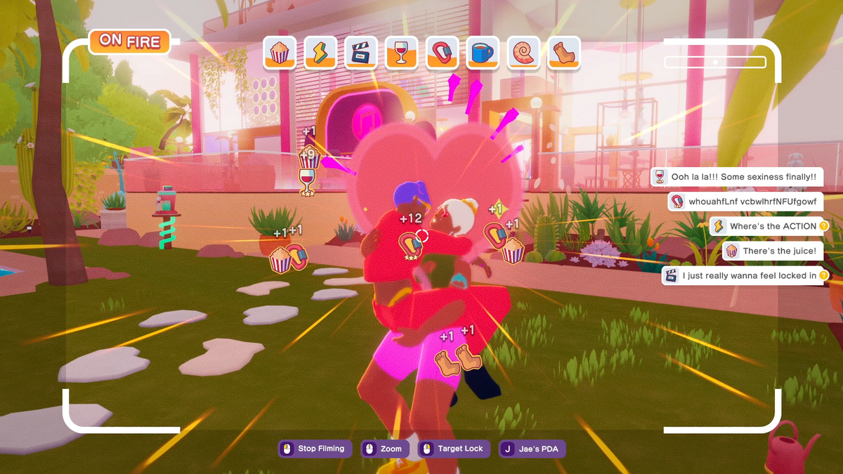 In the beginning, it was a little tough to stop thinking of the game as an actual TV show. I focused a lot on conversations, kisses, and fights. This is the stuff you’d want to see, right? But, of course, real people don’t make up the in-game audience. Half the time I wasn’t even capturing the drama between the cast members. I was recording things like the pool, the art, the fish, the fire, and butts. The audience I had to worry about didn’t seem to care at all about the actual substance of the show, which was a bizarre mechanic. But once I knew what the game wanted from me, it was a lot easier. Lining up shots to make sure I could get as much as I needed was really fun, but I became so focused on pleasing the audience that the actual show itself became a non-priority.