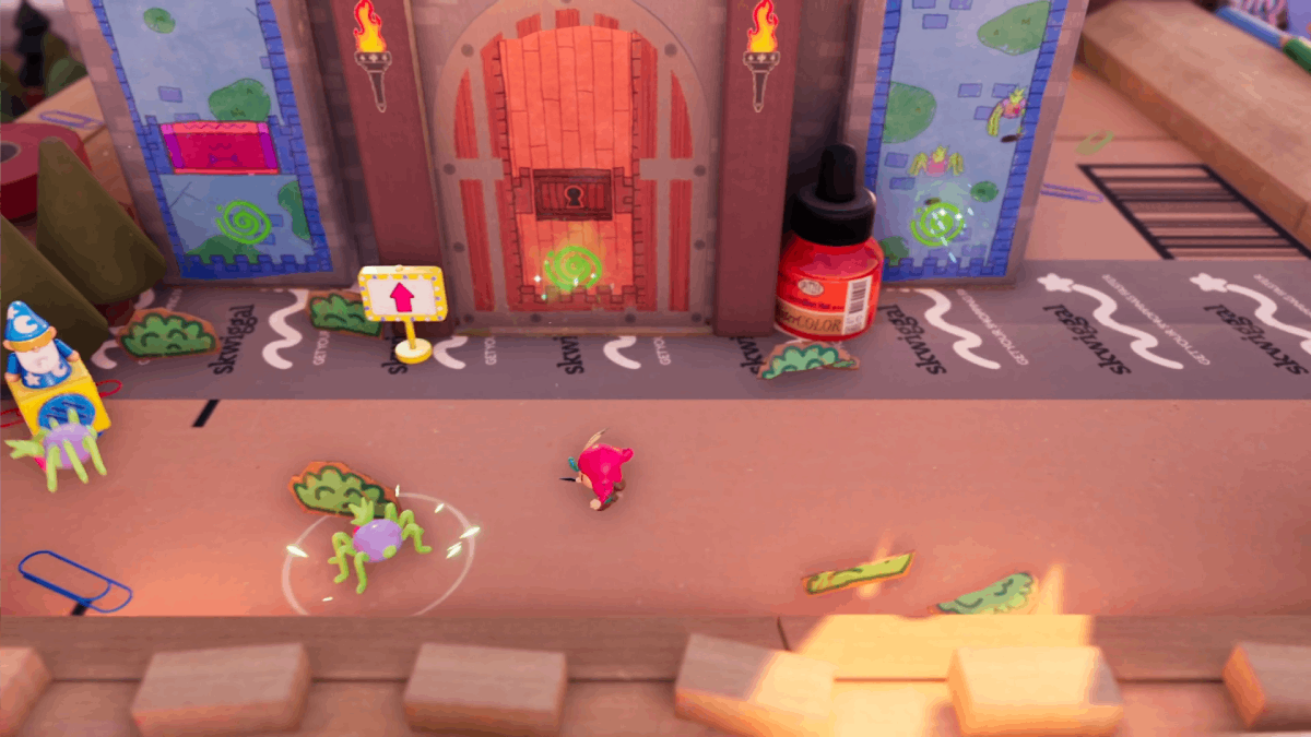 You’ll also get sequences where you get to explore the desk, where Jot can jump in and out of doodles on Post-It notes, clamber over stationery and interact with characters and worlds outside of his own. There’s one moment involving an obvious yet legally distinct Magic the Gathering card that got a genuine chuckle out of me because of how much the art styles contrasted with one another.